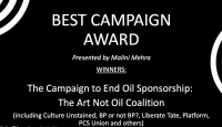 BREAKING! Our campaign against oil sponsorship of the arts has just won 'Best Campaign' at the #CreativeGreen Awards 2020, organised and hosted by the amazing Julie's Bicycle.