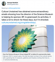 See also: https://cultureunstained.org/oil-sponsorship-of-the-science-museum/