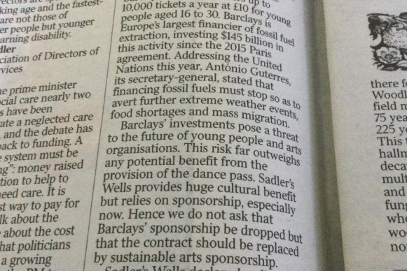 'Scottish Ballet has become the latest cultural institution to distance itself from the fossil fuel industry with an announcement that it has cut its ties with BP. This follows a dance protest outside the Theatre Royal in Glasgow during COP26