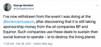 See also: https://cultureunstained.org/oil-sponsorship-of-the-science-museum/